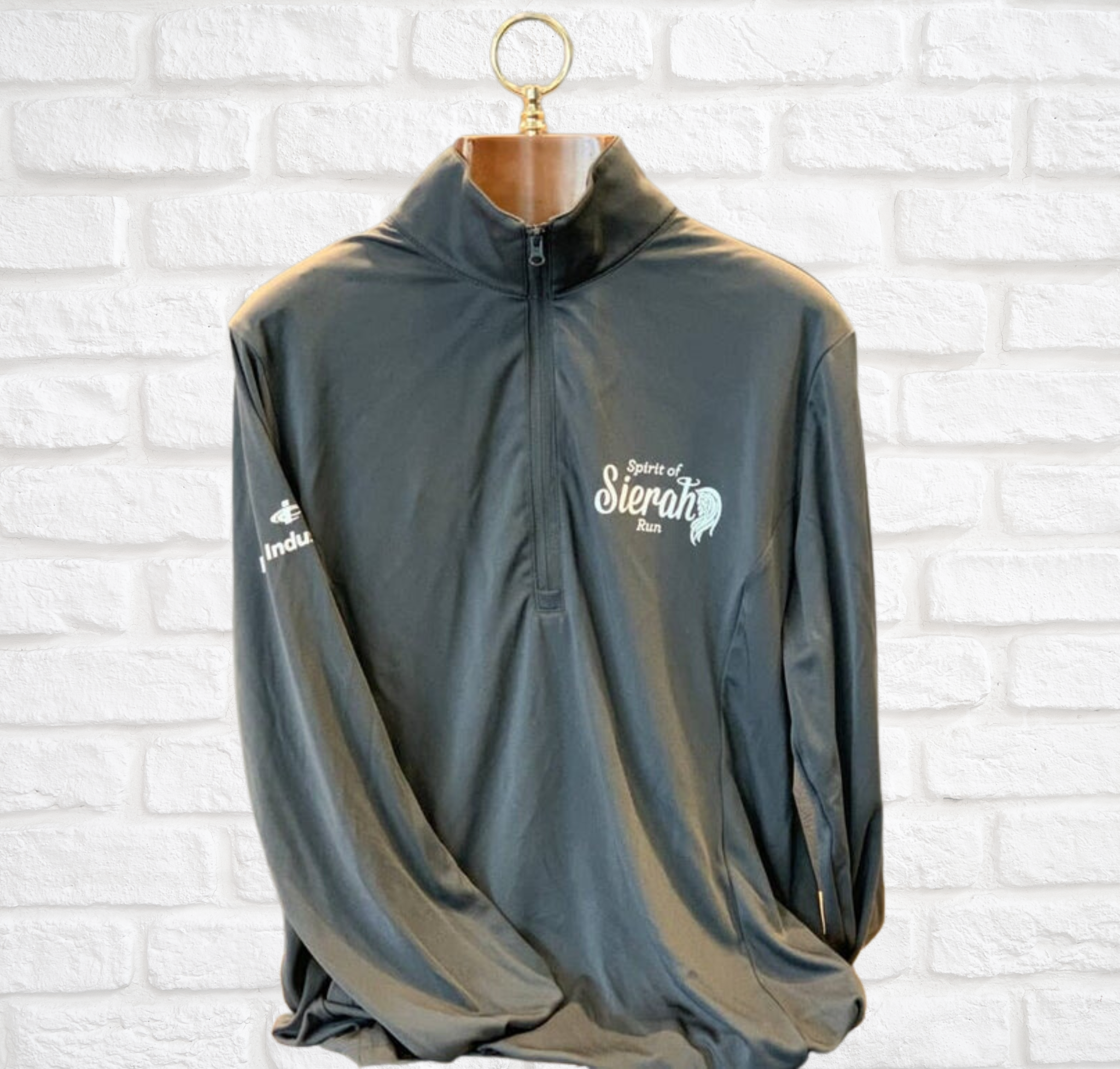 This pullover is made by Sport-Tek and is 100% Polyester. The color is dark gray with white lettering. 3XL pullovers will be an additional $5.00.